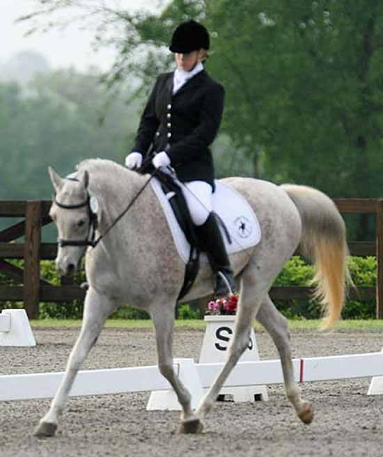About three years ago I started training CF Sambucca for Dee Bruce of Chatuge Farms. At first we never thought Sammi would make much of a dressage horse, her gaits were quite flat. Soon enough though this little mare started to surprise me. She picked up leg yield very quickly and within weeks was correctly leg yielding the entire width of a 20x40m arena. Shoulder In also came quick and easy to Sammi, as did travers / renvers, half pass, full pass and turn on the haunches. Sammi soon became one of my favorite school horses. With her excellent mind and kind demeanor she has taught numerous children and adults how to ride. She has also helped to teach more experienced riders how to ride the laterals. With her relatively flat gaits she is smooth and easy to sit.